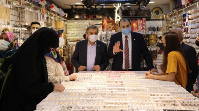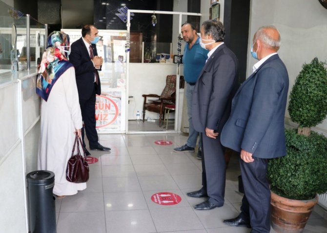 Van Esnaf ve Sanatkarlar Odaları Birliği (ESOB) Başkanı İsa Berge, Halk Sağlığı Başkan Yardımcısı Büşra Tapan Soğanda ile birlikte esnafı gezerek...