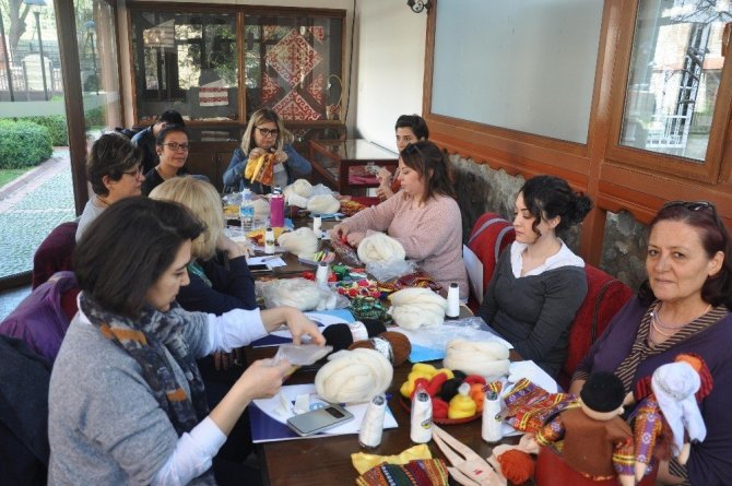 Ege Üniversitesi Etnografya Müzesi’nde ’Waldorf Bez Bebek Atölyesi’ gerçekleştirilirken, Ege Bölgesi yöresine ait bez bebekler yapıldı.