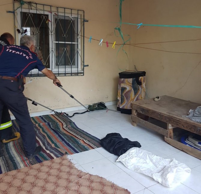 Eve giren yılanı itfaiye çıkardı