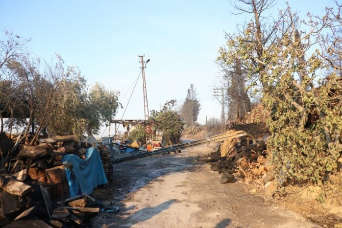 Yangının etkili olduğu yerleşim yerlerindeki acı fotoğraf ise gün ağırınca ortaya çıktı. Özellikle Merkez ve Cumhuriyet mahallerinde yerleşim yerleri ile sera ve bahçeleri etkileyen yangın dolayısıyla maddi hasar oluştu. Dün akşam evini boşaltmak zorunda kalan 57 yaşındaki Hamide Bağ'da sabah saatlerinde evine geldiğinde acı tablo ile karşılaştı. Evinin tamamen yandığını gören Bağ, gözyaşlarına boğularak, ağıt yaktı. "Benim evim" diyerek gözyaşı döken Bağ, "Yeni televizyon, buzdolabı aldıydım. Yemeyip çamaşır makinası almıştım. Vay benim evim vay. Her şeyim olsun diye uğraşırdım. Ben yemeyip, sandığımı doldurmak için uğraşırdım. Dün yangın buraya gelince, polisler buraya gelip buraları boşalttılar. Buralarda kocamın emekleri var" dedi.