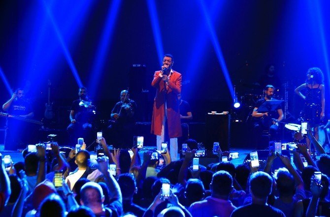 Konser sonrası sunucu Ersin Düzen, Hakan Altun’a, EXPO 2016’nın sembolü olan şakayık çiçeği takdim etti.