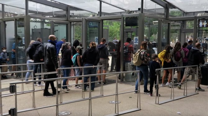 Fransa'nın en fazla turist alan sembollerinden Eyfel Kulesi, korona virüs salgını nedeniyle alınan önlemler kapsamında ziyarete kapatılmıştı. Kule, 9 ay aranın ardından bugün yeniden ziyarete açıldı. Kuleye çıkmak isteyen turistler, gişeler önünde uzun kuyruklar oluşturdu. Kulenin günlük kapasitesi sosyal mesafe kuralı kapsamında bin 300 kişi ile sınırlandırıldı.