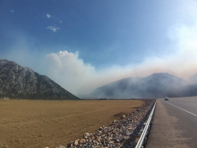Manavgat yangını ilçenin kuzeybatısında Beydiğin, Sırtköy, Çardak ve Kızıldağ mahallelerinde devam ederek yapımı devam eden Antalya-Konya Karayolu Demirkapı tüneli bölgesini aşarak İbradı ilçesine bağlı Eynif Ovası'na doğru ilerleyen yangın, dün akşam saatlerinde Eynif Ovasına indiği bildirildi.