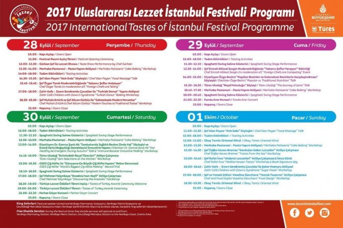 28 Eylül Perşembe günü İstanbul Valisi Vasip Şahin ve Cumhurbaşkanı Recep Tayyip Erdoğan’ın oğlu Bilal Erdoğan tarafından açılışı yapılan festival, 1 Ekim Pazar gününe kadar ziyaretçilerini bekliyor. Yenikapı’da bulunan Avrasya Gösteri ve Sanat Merkezi’nde gerçekleştirilen festivalde dünya mutfağından bir çok lezzet tanıtılıyor. Farklı kültürlerin mutfaklarının yer aldığı festivalde, lezzet atölyesi çalışmaları, farklı tadımlar ve dünya lezzetlerinden sunumlar yer alıyor. Ödüllü şefler ve diyetisyenlerin de bulunduğu 4 gün sürecek olan 2017 Uluslararası Lezzet İstanbul Fesivali’ne Eyüp Belediyesi de ESKEP ve Zahir Kafe ile katıldı.