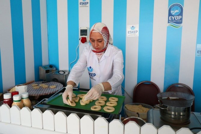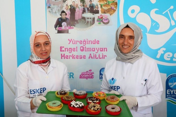 Eyüp Belediyesi festival alanında ki standında; ESKEP programı ile 180 saatlik kurslarını tamamlayan Havva Oğuzkurt ve Begüm Müderrisoğlu’nun yaptıkları ’’Tukish Donut’’ ları, Zahir Kafe’de çalışan özel çocukların aracılığıyla festival alanına gelen misafirlere satıyorlar.