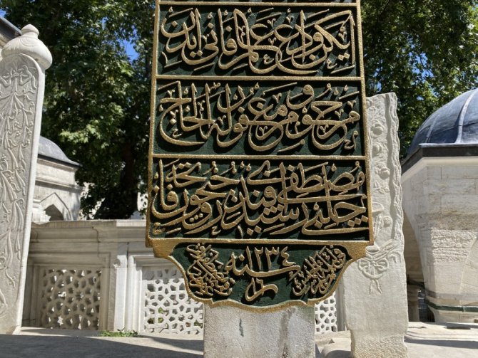 Osmanlı döneminde nazırlık ve defterdarlık yapmış Çelebi Mustafa Reşit Efendi'nin, Eyüpsultan Mezarlığı'ndaki celi sülüs hattıyla kazınan mezar taşı dikkat çekiyor. Sanat Tarihçisi Hülya Yalçın, mezar taşının dünya çapında bilindiğini söyleyerek, "Dünyanın farklı ülkelerinden sırf bu mezar taşını görmek için gelenler var" dedi.