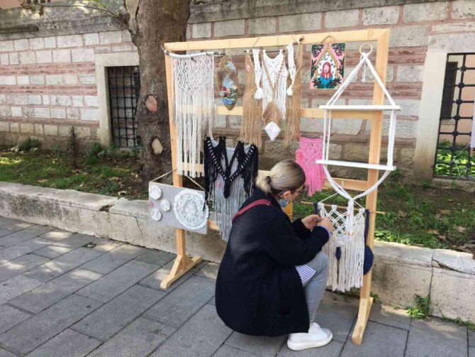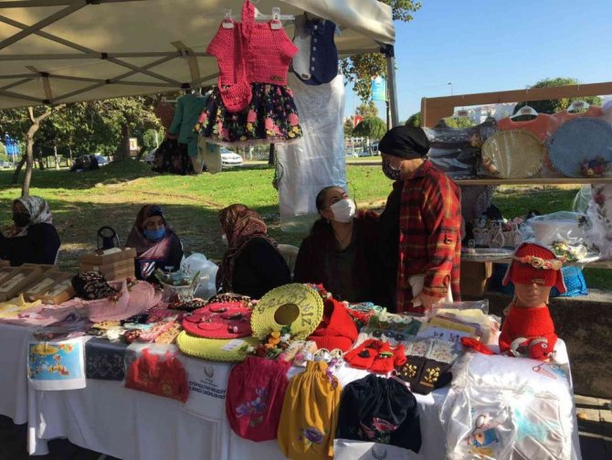 Annesi sayesinde el işlerine yönelen 48 yaşındaki Nükhet Birgül Eroğlu, "Yaklaşık iki buçuk üç senedir belediye bize böyle bir imkan sağladı, Allah razı olsun. Bu şekilde el emeği ürünlerimizi buralarda satıyoruz. Mağazamız var, mağazaya da ürünlerimizi veriyoruz. Orada da satıyorlar belirli zaman diliminde satılan ürünlerin paralarını bizlere veriyorlar. Annem çok fazla bu işlerle haşır neşirdi. Ben anaokulu öğretmenliği yaptım 16 yıl. Sonra mesleği bırakınca bu işlere yöneldik" dedi.