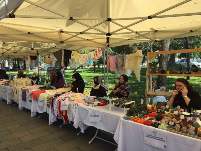 Festivalde kızıyla birlikte stant açan 75 yaşındaki Fatma Nebahat Eroğlu, "Evde el işleriyle uğraşmaya çalışıyorum kendi çabamla, kızım da yardımcı oluyor. Birlikte beraber bir şeyler yapmaya çalışıyoruz. 16 yaşından beri Beyoğlu Kız Akşam Sanat'tan mezunum. O zamandan beri yapma abiye çiçekler yapıyordum daha önce. Ondan sonra o abiye çiçeklerin modası geçti şimdi yapay çiçekler çıkınca biz mecburen başka işlere dönmek zorunda kaldık. Yani 50 senedir devamlı dışarı çalışan insanım. Şu anda da evde çalışıyorum. Belediyemiz de bize böyle bir imkan tanıdı Allah razı olsun. İki üç oldu böyle bir şey açıyoruz festivalimiz var. Allah nasip ederse kazanırsak kazanacağız" şeklinde konuştu.