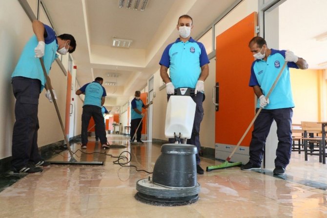 Başkan Aydın’ın üzerinde hassasiyetle durduğu okul temizliği ile ilgili olarak, günlük temizlik işleri için belediye tarafından okullara tam zamanlı 128 adet sabit temizlik personeli görevlendirdi. Her okul için ayrı ayrı görevlendirilen temizlik personelleri yıl boyunca okullarda hizmet veriyor.Ayrıca her okulun ayda bir defa ayrıntılı temizliğinin yapılması için 10 kişilik Gezici Temizlik Ekibi, 2 adet şoför ve 1 adet şef görevli bulunuyor. Ekiplerin kontrol hizmetinde kullanılmak üzere 1 binek oto ve aylık düzenli temizlik malzemesi dağıtımı ile gezici temizlik ekibinin taşınması için 1 adet minibüs tahsis edildi.