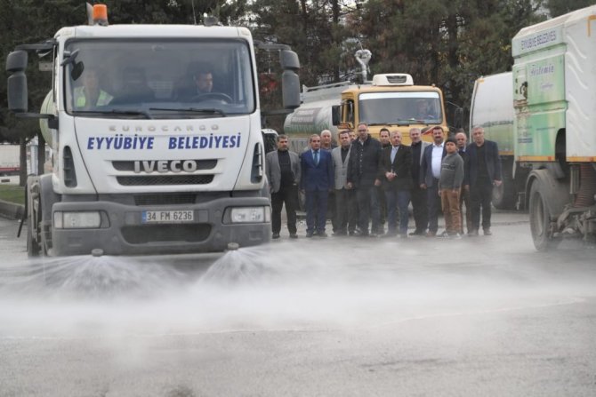 Eyyübiye’de cadde ve sokaklar köpüklü su ile yıkanıyor