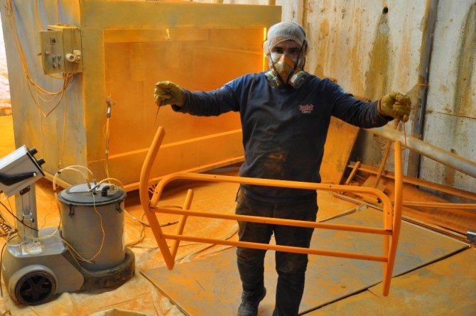 Metal atölyesi öğretmeni ve şefi Semih Ceylan, temizlenerek gelen sıra iskeletinin elektrostatik toz boya ile boyama işlemlerinin yapıldığını belirtti. Ceylan, döner sermaye ile 7 bin 500 sıranın boyama işini yaptıklarının ifade etti.