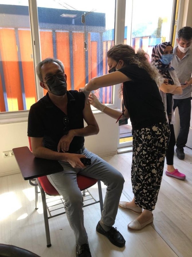 Bursa'da Kovid-19 ile mücadele kapsamında yerinde aşılama sürecinde fabrikalarda ikinci doz aşı uygulamasına başlandı.