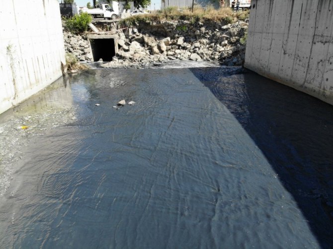 Fabrikaların kirlettiği dere gökkuşağı renklerine büründü