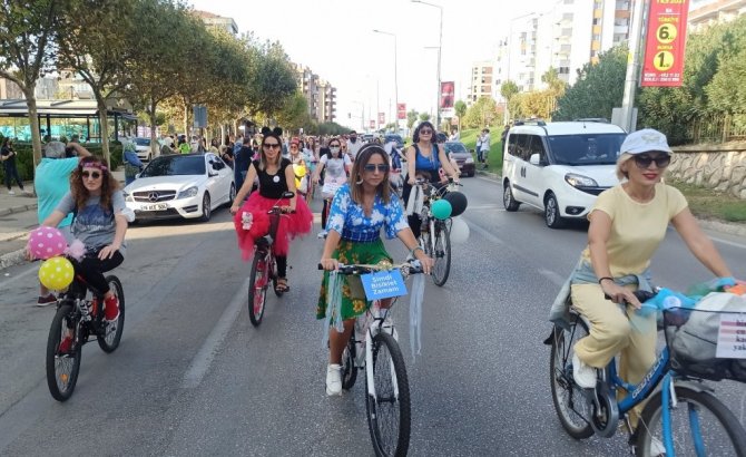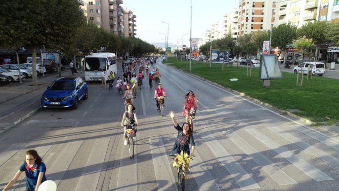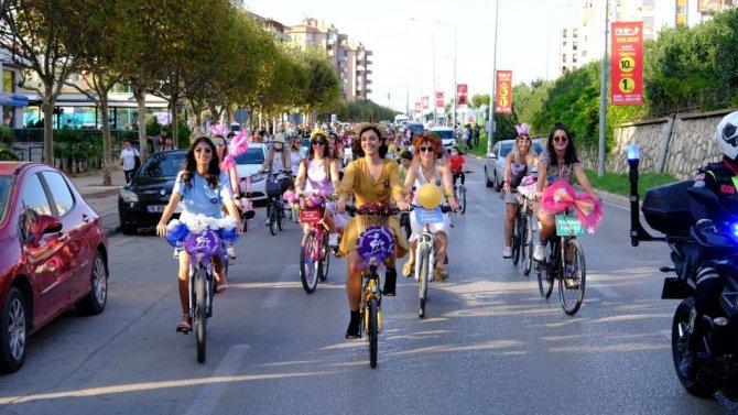 Kadınlar, çocukları ve eşleriyle dokuzuncusu düzenlenen "Süslü Kadınlar Bisiklet Turu'na katıldı. Topuklu ayakkabıları, şık kıyafetleriyle pedala basan kadınlar, Bursa'ya renk kattı.