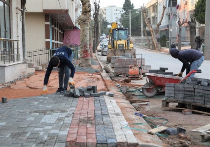 Körfez'de altyapı çalışmalarının büyük oranda tamamlandığı Fatih Mahallesi'nde bir yandan asfaltlama çalışmaları devam ederken, diğer yandan da kaldırımlar yenileniyor.