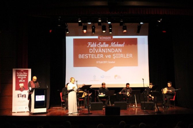 Fatih Sultan Mehmet’in sanatçı ve bestekarlar tarafından bestelenen eserleri solist Güzin Değişmez ve Burhan Kul tarafından seslendirildi. Proje kapsamında hazırlanan albüm ve kitap dinleyicilere hediye edildi. Peygamber müjdesine mazhar olmuş, devlet adamı vasfının yanında felsefe, musiki, resim ve şiir gibi pek çok alana ilgi duymuş, çok yönlü bir şahsiyet olan Fatih Sultan Mehmet’in kaleme aldığı şiirler günümüz Türkçesiyle düz yazıya da çevrilerek, Türkçe, Boşnakça ve İngilizce kitap olarak yayınlandı. Konsere FSMVÜ Rektör Yardımcısı Prof. Dr. Fahameddin Başar, ÜNSAK Derneği Başkanı İsmet Küçükoğlu, ülkemizin önemli bestekâr ve saz sanatçıları Alâeddin Yavaşca, Tevfik Soyata, Şentürk Deveci ve Zeki Atkoşar’ın yanında Derya Türkan, Muhammed Ceylan ve Sercan Erenler de katıldı.