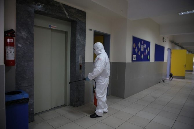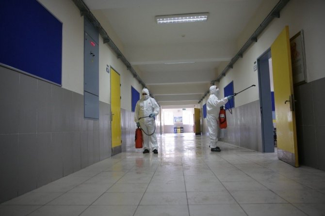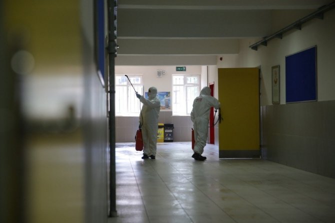 12 kişiden oluşan dezenfeksiyon ekibi okullarda Sağlık Bakanlığından onaylı olan, mikroorganizmalara karşı geniş etki alanına sahip dezenfektan kullandı. Kullanılan dezenfektanların uygulayıcılara ya da uygulama ortamını kullanacak insanlara hiçbir zararı bulunmadığı kaydedildi.