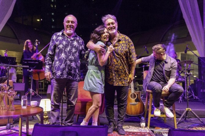 Grup Gündoğarken ile Akmerkez Üçgen Teras’ta Yıldızlı Buluşmalar’ın ilk konuğu olan Fatma Turgut, misafirlere unutulmaz bir yaz akşamı yaşattı. Yıldızların altında dünden bugüne eskimeyen şarkıları canlı olarak yorumlayan Fatma Turgut’a Grup Gündoğarken eşlik etti.