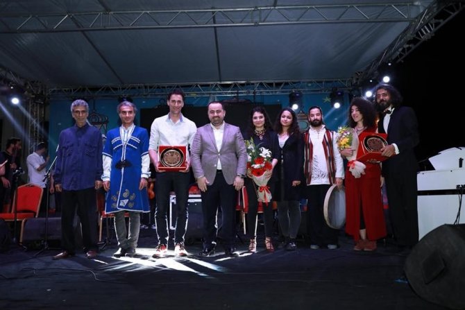 Konserin sonunda Fatsa Belediye Başkanı Muharrem Aktepe sahneye çıkarak ünlü sanatçı Bekir Aksoy ile müzisyen İrsel Çivit’e plaket takdiminde bulundu.