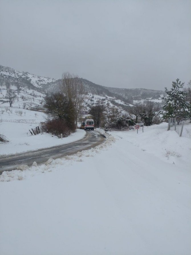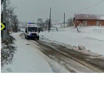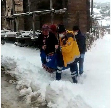 Felç geçiren hastayı iş makinesiyle yolu açarak hastaneye yetiştirdiler