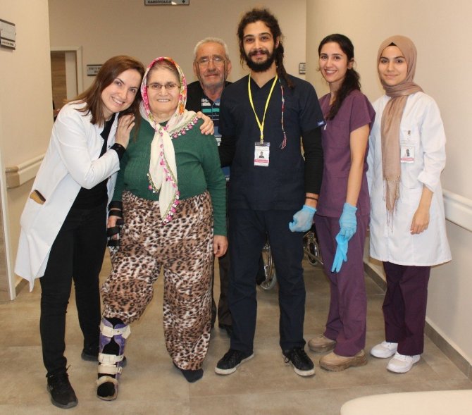 Manisa’nın Alaşehir ilçesinde 8 yıl önce geçirdiği felç sonrası sağ bacağını ve kolunu kullanamayan, konuşma yetisini kaybeden Ümmü Kaygısız, 3 hafta gördüğü fizik tedavi ve rehabilitasyon sonrası ilk adımlarını atmaya başladı.