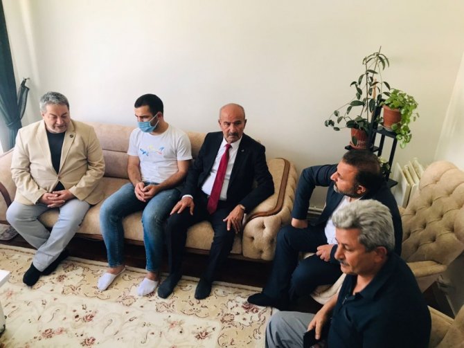 Milliyetçi Hareket Partisi (MHP) Malatya Milletvekili ve partinin MYK Üyesi Mehmet Fendoğlu, Malatyalı Gazi Mert Can Fırtına'yı evinde ziyaret etti