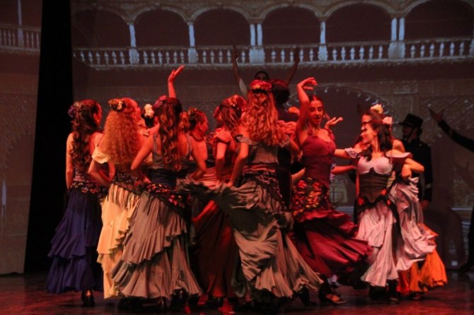 Tüm dünyanın bildiği ve sevdiği, güzel çingene kızı Carmen'in tutkulu aşklarının anlatıldığı, dansları, dekor ve kostümleri ile seyirciden büyük beğeni toplayarak kapalı gişe oynayan eser Bizet'nin ünlü Carmen operasının müzikleri eşliğinde sahnelendi.