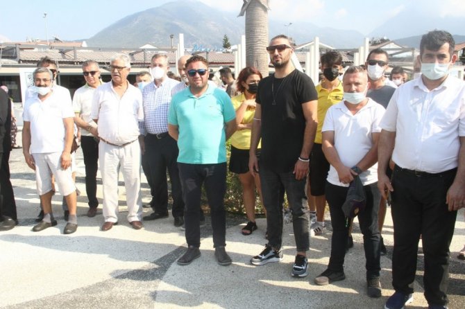 İşletmeci Aydın Ertemli konuşmasının devamında" Son olarak Fethiye sahil bandı 6 aylık hukuk mücadelesinin sonunda 02.09.2021 tarihinde Fethiye Belediyesi'ne teslim edilmiştir. Fethiye Belediyesi tarafından söz konusu alandaki işletmeler, emekçiler, Fethiyeliler, mağdur edilmeyerek alanın tasarruf hakkı Fethiye Belediyesince işletmecilere, yani bizlere emekçilere, balıkçılara kooperatifine teslim edilmiştir. Bu uğurda emeği geçen Fethiye Belediye Başkanı Alim Karacaya, taşın altına elini sokmaktan kaçınmayan tüm büyüklerimize, bu zorlu süreçte ve mücadelede yanımızda duran Fethiye Baro temsilcimiz Av.Fatih Taşere ve tüm Fethiye halkına teşekkür eder şükranlarımızı sunarız. Son sözümüz Fethiye sahil bandı Fethiyenindir, Fethiyelilerindir. kendisini Fethiyeli hissedenlerindir" diye konuştu.