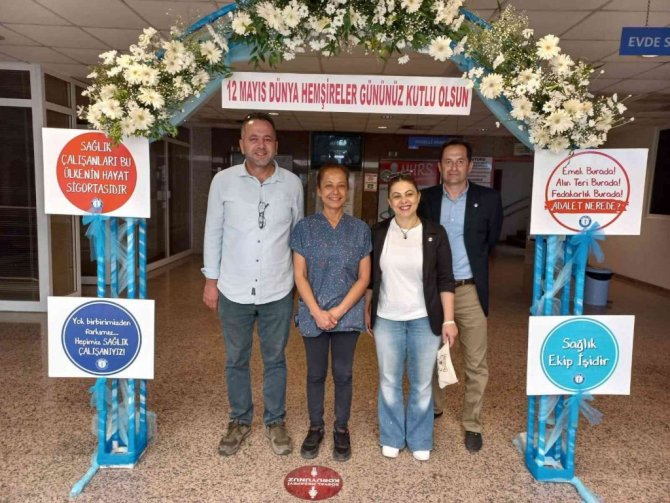 Hemşirelerin beyaz melekler olarak anıldığını ifade eden Eren, "Yetkili ve etkili sendikacılık anlayışıyla her platformda sağlık emekçisinin hür ve gür sesi olmaya devam ederken beyaz meleklerimize çiçeklerden bir tak ile jest yapmak istedik. Onların da bu sürpriz ile karşılaşınca yüzlerindeki gülümseme bizi mutlu etti. 12 Mayıs Dünya Hemşireler Günü ve Hemşirelik Haftası kutlu olsun" diye konuştu.