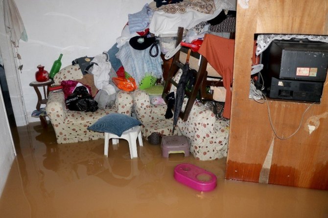 İlçede geceden beri aralıksız yağan yağmur nedeniyle ilçeye bağlı Taşyaka Mahallesi’ndeki 4 evin bodrum ve girişi katını su bastı.