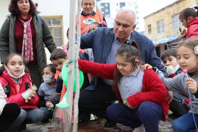 Mavi ile yeşilin buluştuğu Erdemli merkezinde, daha da yeşil hale gelmesi için ilçe belediyesi, Türkiye Erozyonla Mücadele, Ağaçlandırma ve Doğal Varlıkları Koruma (TEMA) Vakfı ve Milli Eğitim Müdürlüğü iş birliği ile yürütülen "Daha Yeşil Bir Erdemli İçin Kaldırımları Ağaçlandırıyoruz" projesi kapsamında bin adet fidan dikimi yapıldı. Etkinlik kapsamında Alata Mahallesinde, kreşten liseye kadar her yaştan 300 öğrenci, öğretmenleri eşliğine, Erdemli Belediyesi Park ve Bahçeler Müdürlüğüne bağlı ekipler koordinesinde belirlenen noktalara fidan dikti. Öğrencilerden bazıları diktikleri fidanlara can suyunu suluklarından verdi. Fidan dikimine katılan Erdemli Belediye Başkanı Mükerrem Tollu ile TEMA Vakfı Erdemli Temsilcisi Murat Başer de çocuklara eşlik ederek hep bir ağızdan orman şarkısı söyledi.