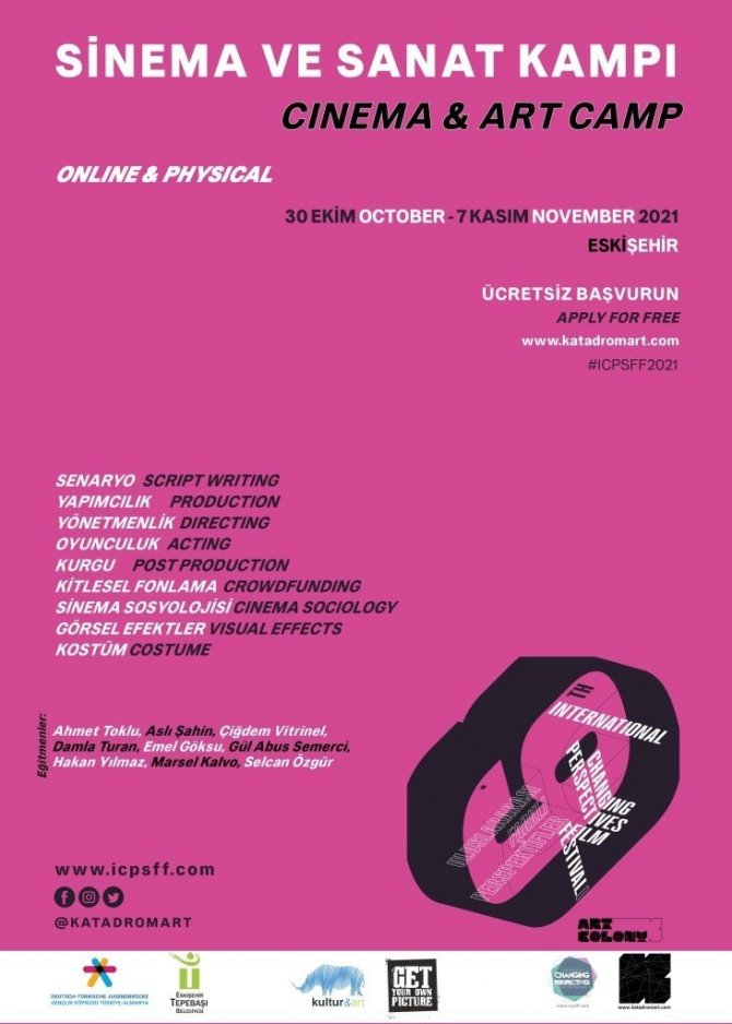 Tepebaşı Belediyesi ve Katadrom Derneği'nin ortaklaşa organize ettiği, Alman-Türk Gençlik Köprüsü'nün desteklediği kampın uluslararası ortaklığını Kultur und Art Initiative eV - Detmold üstlendi. Emel Göksu, Çiğdem Vitrinel, Marsel Kalvo, Gül Abus Semerci, Selcan Özgür, Aslı Şahin, Hakan Yılmaz, Ahmet Toklu gibi önemli isimlerin, sinemasal süreçlere dair atölye ve söyleşiler gerçekleştireceği kampa, konuk konuşmacılar da katılacak. 30 Kasım'da başlayan ve yoğun bir talep alan sinema kampına katılım tamamen ücretsiz olup, katılımcılar Eskişehir başta olmak üzere, çeşitli şehirlerden seçildi. Kampa Almanya'dan katılan katılımcılar ve kontenjan nedeniyle kampa davet edilemeyen adaylar, tüm eğitimleri zoom linkleri üzerinden takip etmeye devam ediyor. Kamp çalışmalarının ana merkezleri Tepebaşı Belediyesi Özdilek Sanat Merkezi ve Tepebaşı Belediyesi Melih Savaş Yaşam Köyü.