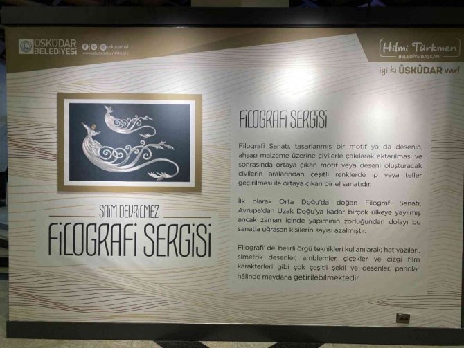 Üsküdar'ı bir kültür sanat semti haline getiren Üsküdar Belediyesi, Selim Devrilmez'in çivilerin ve tellerin arasından süzülen iplerle hayat verdiği Filografi Sergisi ile, İstanbulluları filografi sanatının yeni temsilcileriyle tanıştırdı. Sanatçının çivilerin ve iplerin dansını, renklerin ve huzurun yön verdiği bir yolculuğa çıkardığı eserlerinden oluşan sergi, filografi sanatının geleneksel motiflerle harmanlanan yenilikçi yüzünü yansıtmakta. Üsküdar Belediyesi Bağlarbaşı Kongre ve Kültür Merkezinde gerçekleştirilen sergiye sanatseverler yoğun ilgi gösterdi. Sergi, kurdele kesimi ve hediyelerin takdim edilmesinin ardından vatandaşlar ile buluştu. Üsküdar Belediye Başkan Yardımcısı Zekeriya Şanlıer günün anlam ve önemine dair katılımcılara açıklamalarda bulundu.