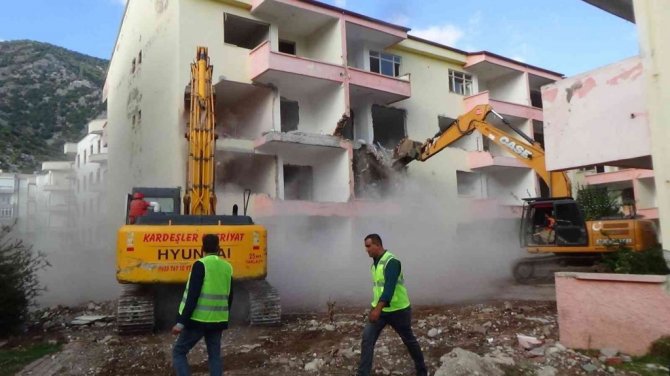 Antalya'nın Finike ilçesinde kentsel dönüşüm için ilk yıkım 8 binalı bir sitede başladı.