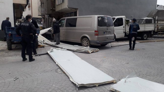 DÜZCE(İHA) – Düzce'nin Akçakoca ilçesinde kuvvetli fırtına etkili oldu. Şiddetli rüzgarda bir binanın çatısından düşen malzemeler otomobile zarar verirken sokağı trafiğe kapattı.