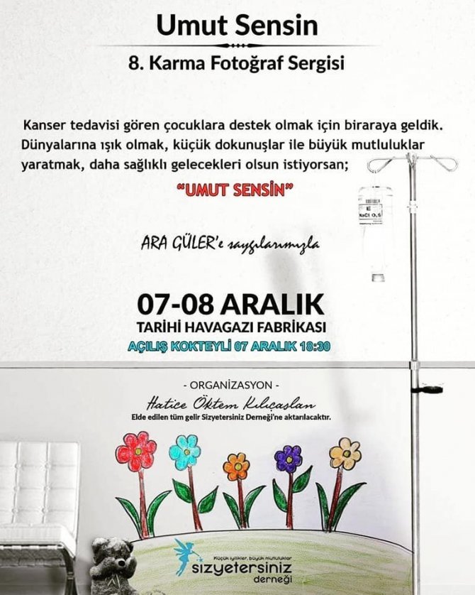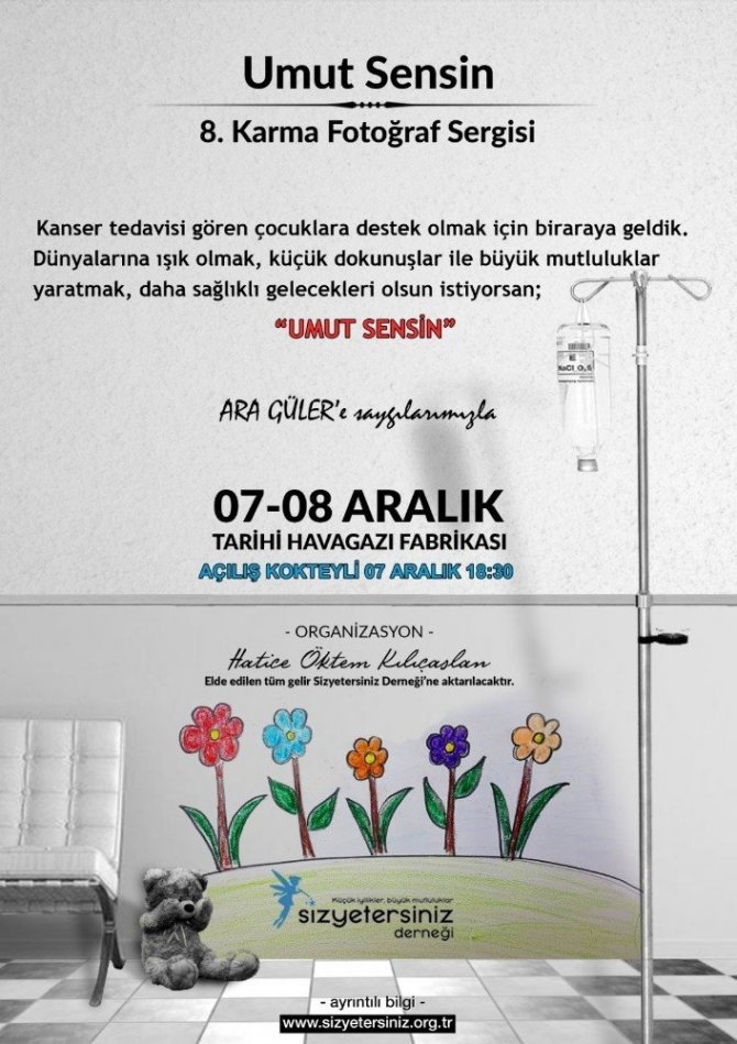 Sizyetersiniz Derneğinin ’’Umut Sensin’’ adıyla düzenleyeceği 8. karma fotoğraf sergisinde, iki ay önce yaşamını yitiren dünyaca ünlü foto muhabiri Ara Güler anılacak, fotoğraf satışından elde edilecek gelirin tamamı kanser hastası çocuklara aktarılacak.