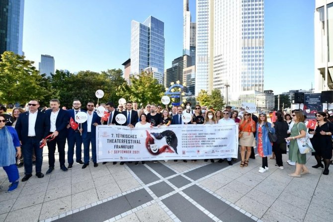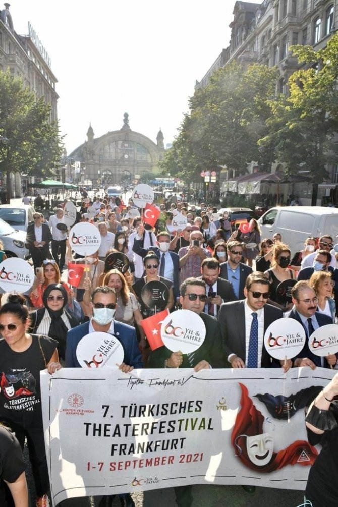 Yurtdışı Türkler ve Akraba Topluluklar Başkanlığı'nın (YTB) desteğiyle Almanya'nın Frankfurt kentinde düzenlenen "7. Türk Tiyatro Festivali" kapsamında, Almanya'ya işçi göçü çerçevesinde giden birinci nesli temsilen "Göçün 60'ıncı Yılı Korteji" düzenlendi.
