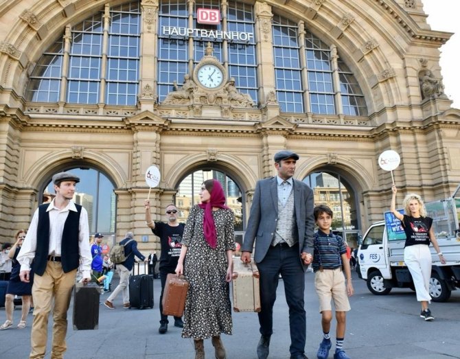 YTB desteğiyle Almanya'nın Frankfurt kentinde devam eden "7. Türk Tiyatro Festivali" kapsamında, Türkiye'nin farklı şehirlerinden Almanya'ya işçi göçü çerçevesinde giden birinci nesli temsilen "Göçün 60'ıncı Yılı Korteji" düzenlendi. Gerçekleşen yürüyüş, Frankfurt merkez tren istasyonu önünden başladı.