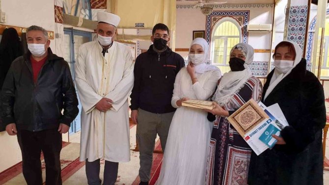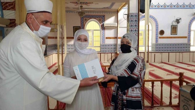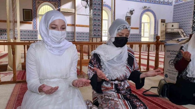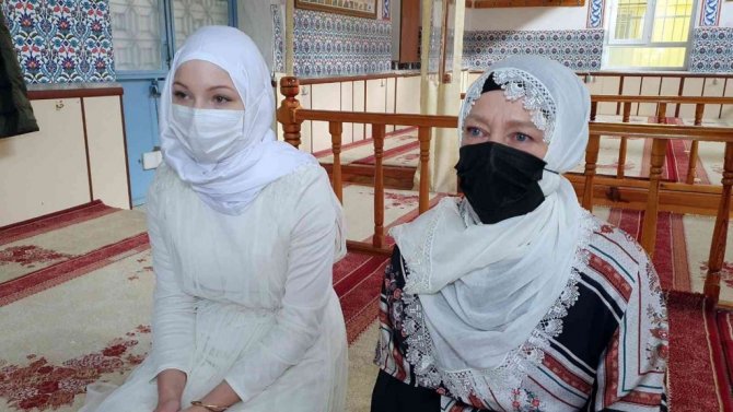 İlçe merkezindeki Yeni Sinan Camiinde Diyanet İşleri Başkanlığının yetkisi ile İmam Hatip Bilal Ekinci tarafından düzenlenen ihtida merasimi ile Müslüman olan ve Türk ismi alan anne Sandrine ve kızı Rebecca'ya Kur'an-ı Kerim ile İslam dini ile ilgili temel bilgilerin bulunduğu çeşitli kitaplar hediye edildi.