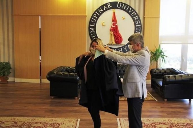 Akademik unvanı yükselen Dekan Yardımcısı Prof. Dr. Fulya Topçuoğlu Ünal’a cübbesini, Dumlupınar Üniversitesi Rektörü Prof. Dr. Kazım Uysal giydirdi.
