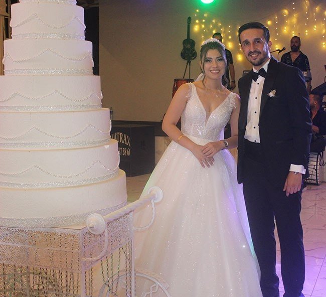Düğün töreninde kulüp yöneticileri, antrenörler ve futbolcular ile yakın dostları, Hatice – Ziya çiftini mutlu günlerinde yalnız bırakmadı.