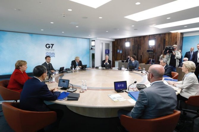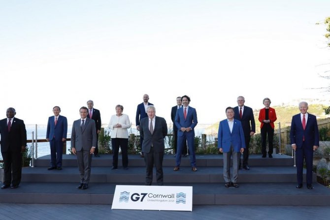 ABD Başkanı Joe Biden, Fransa Cumhurbaşkanı Emmanuel Macron, Almanya Başbakanı Angela Merkel, İtalya Başbakanı Mario Draghi, Kanada Başbakanı Justin Trudeau ve Japonya Başbakanı Yoshihide Suga, G7 Zirvesi'nde İngiltere Başbakanı Boris Johnson'ın ev sahipliğinde bir araya gelerek küresel sorunlara çözümler sunmayı amaçlıyor.