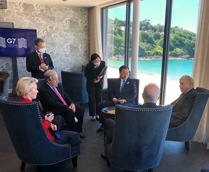G7 Zirvesi'nin 2'nci günü sona ererken, liderlerin şu ana kadar ağırlıklı olarak, Çin'e rakip olacak altyapı projesinin destek planının yanı sıra dünya geneline aşı dağıtımı ve Kuzey İrlanda Protokolü konularının üzerinde durduğu açıklandı. Liderlerin, yoksul ülkelere 1 milyar doz Covid-19 aşısı bağışlaması yönünde anlaştıkları belirtildi. Birleşmiş Milletler Genel Sekreteri Guterres, "Daha fazlasına ihtiyacınız var" diyerek, yoksul ülkelerdeki insanlara hızlı bir şekilde aşı yapılması gerektiğini söyledi. Guterres, "Küresel bir aşı planına ihtiyacımız var. Aciliyet duygusuyla ve savaş ekonomisinin öncelikleriyle hareket etmemiz gerekiyor ancak bunu elde etmekten çok uzağız" ifadelerini kullandı.