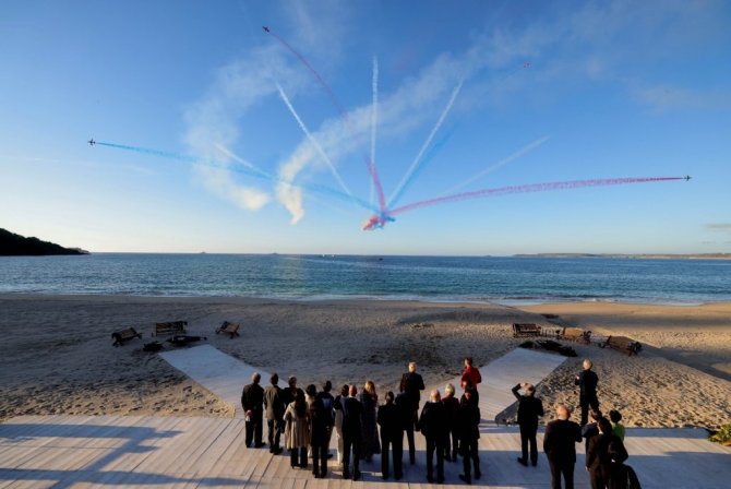 Zirveye yeni katılanlarla birlikte tekrar aile fotoğrafı çektirilirken, günün son toplantısının ardından Carbis Körfezi sahilinde barbekü ve Red Arrows uçuşu etkinlikleri gerçekleştirildi.