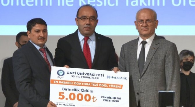 Gazi Üniversitesi 95'inci Yıl Etkinlikleri kapsamında, Halkbank iş birliği ile düzenlenen "En Başarılı Doktora Tezi Yarışması" sonuçlandı. Gazi Üniversitesi'nin farklı enstitülerinden belirlenen doktora tezleri arasından ilk üçe giren tez sahiplerine ödülleri Gazi Üniversitesi'nde düzenlenen ödül töreniyle verildi. Mimar Kemaleddin Salonu'nda düzenlenen etkinlikte doktora derecesine giren, farklı enstitüden belirlenen tezlerin sahiplerinin arasından 3'üncülere biner lira, 2'ncilere 3 biner lira, 1'inci olanlara ise 5 biner lira para ödülü ve fidan dikim belgesi verildi. Para ödüllerinin maddi desteğini ise Halkbank üstlendi.