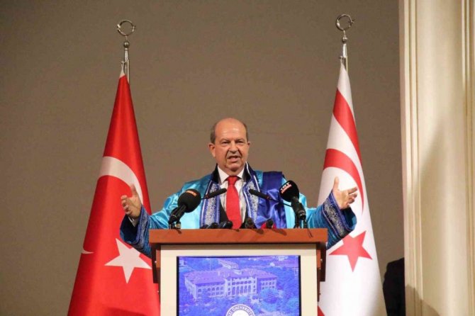 Gazi Üniversitesinde düzenlenen törenle Kuzey Kıbrıs Türk Cumhuriyeti (KKTC) Cumhurbaşkanı Ersin Tatar'a biniş giydirilerek Fahri Doktora Belgesi takdim edildi.