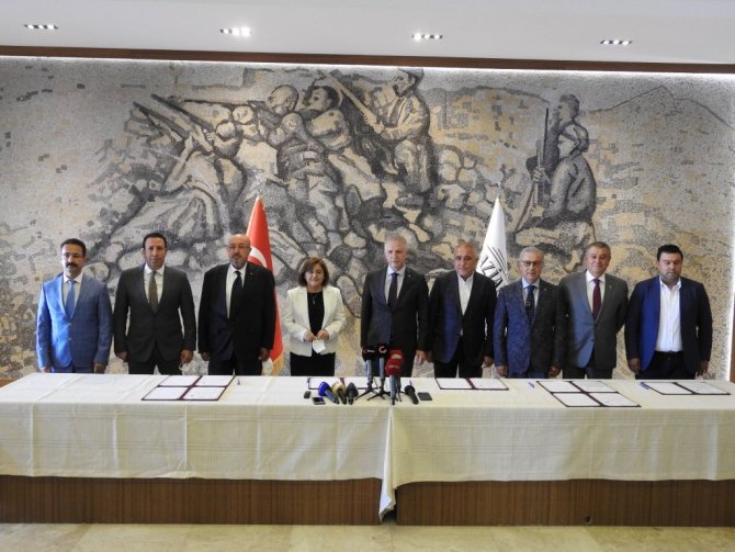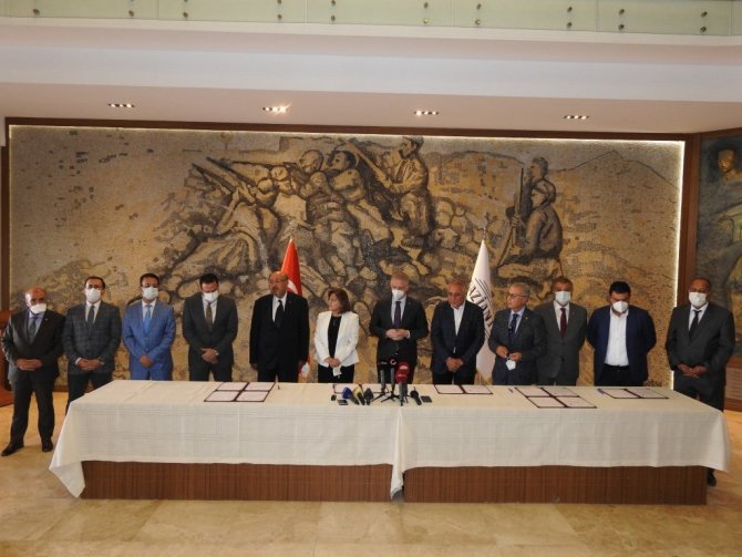 Protokol töreninin arkasından Büyükşehir Belediye Başkanı Fatma Şahin ve diğer protokol üyeleri günün anısına hatıra fotoğrafı çektirdi.
