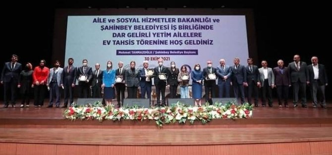 Kura töreninde konuşan Şahinbey Belediye Başkanı Mehmet Tahmazoğlu ise evlerin herhangi bir bedel ödemeden kullanılabileceğini ve projenin nasıl gerçekleştiğini aktararak, " Bugün bizim için gerçekten çok güzel bir gün. Özellikle yetimlerin yüzünü güldürmek gerçekten çok güzel. Allah hepinizden razı olsun. Rabbim sizlerin duasından bizleri eksik etmesin. Gaziantep önemli bir şehir. Coğrafi konumu itibariyle baktığımız zaman PKK terörü münasebetiyle doğrudan gelen göçün burada bir tür baraj gibi tutulması, daha sonra Esad rejiminden kaçıp gelen 450 bin Suriyelilerin kente gelmesi birçok kozmopolit olay kentte mevcut. Bütün bu olumsuzluklara rağmen Cumhurbaşkanımızın liderliğinde Cumhur İttifakıyla hep birlikte bu şehirde yapılması gereken her şey yapılıyor. Herkes kendi üzerine düşeni yapıyor. Ciddi bir uyum ve gayret var. Allah bütün idarecilerimizden razı olsun. Cumhurbaşkanımızın liderliğinde Aile ve Sosyal Hizmetler Bakanlığı olarak gerçekten bu güne kadar çok güzel icraatlar yapıldı. Sosyal politikalar ve hizmetler gerçekten çok önemli. Biz ne kadar hizmet yaparsak yapalım sosyal belediyecilik, sosyal adalet ve toplumun rahatlaması bu açıdan çok büyük bir önem arz ediyor. Toplumun en önemli kesimlerinden birisi de yetimlerimiz. Bunlarla alakalı da gerek hükümetimizin gerekse de yerelde belediyelerimizin çok büyük çalışmaları var. Yetim koordinasyon merkezlerimiz var. Sürekli yetimlerimizle ve ailelerimizle alakadar oluyoruz. Annelerimize, çocuklarımıza özel programlar yapıyoruz. Onların o yalnızlığı hissetmemeleri adına gerçekten güzel çalışmalarımız var. Çünkü şunu biliyoruz ki yetim ağladığında rahmanın arşı titrer. O yüzden yetime sahip çıkmak çok önemli. Peygamber Efendimiz, "kendi yetimine ve başkasına ait yetimi himaye eden kimseyle ben cennette beraberim" diyor. Yetimlerimize ev fikri Gaziantep Valimizin fikriydi. Valimiz, "Aile ve Sosyal Hizmetler Bakanlığımız 6 milyon TL para verecek. Siz desteklerseniz ve hayırseverleri de bulursak ev yapabilirsek güzel olur" dedi. Bizde yaptığımız 220 evimizi bunun için tahsis edelim ve yetimlere verelim dedik. Hayırseverlerimizden 1 milyon TL kadar para topladık. Evlerin toplam bedeli de 30 milyon TL kadar. 6 milyon TL'si bakanlığımız, 1 milyon TL'si hayırseverlerimizden ve kalan 23 milyon TL'sini de biz karşıladık. İstedik ki bu yetim ailelerimiz yüzü gülsün. Ailelerimiz bu evleri herhangi bir bedel ödemeden kullanacaklar ve inşallah yetimin yüzü gülecek hepimizin yüzü gülecek. Onların duasını almak çok büyük bir mutluluk" diye konuştu.