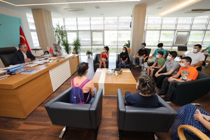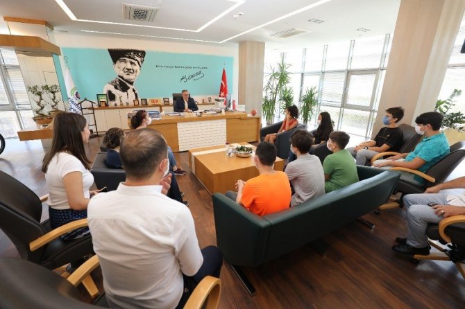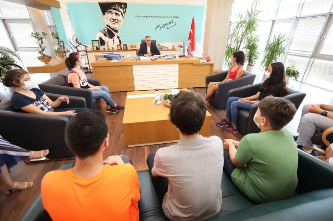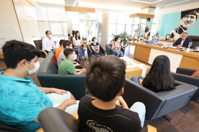 Gaziemir Belediyesi Destek Eğitim Kursu’nda (GAZİDEK) sınavlara hazırlanan ve Liselere Geçiş Sınavı’ndaki (LGS) başarılarıyla yüzde 7’lik dilime girerek İzmir’in en iyi liselerine yerleşen öğrencileri makamında ağırlayan Gaziemir Belediye Başkanı Halil Arda, öğrencileri tebrik etti.