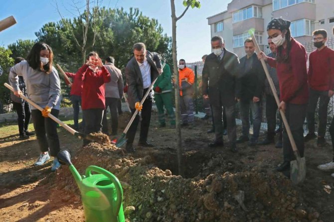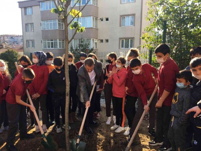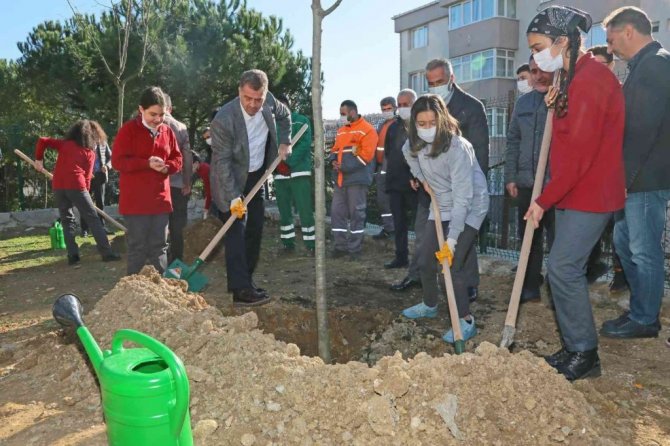 Gaziosmanpaşa Belediye Başkanı Hasan Tahsin Usta, Milli Ağaçlandırma Günü'nde öğrencilerle bir araya gelerek fidan dikti.